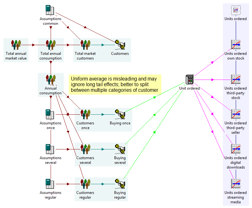 This is the commercial heart of the model, but we should at least consider the costs and potential hidden benefits of the website user experience too. We can probably model the online store elements at a high level in terms of: