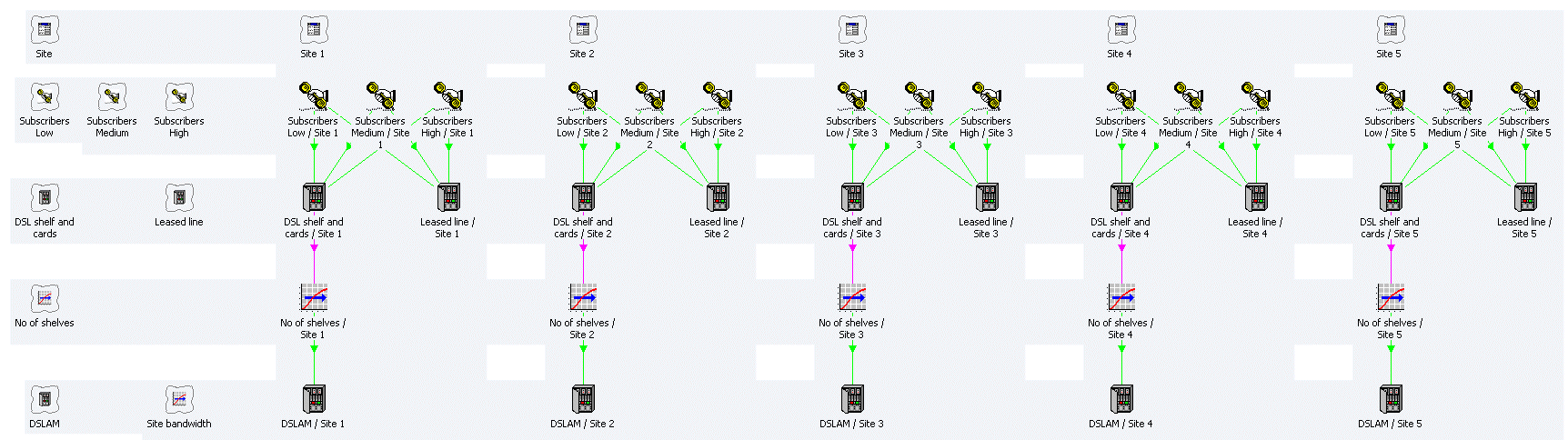 template for each site-location Variant, and performs the DSLAM and backhaul calculations