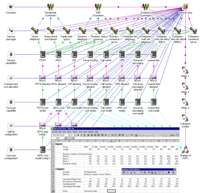the modeller to develop a high-level, GUI-driven view of the network business structure