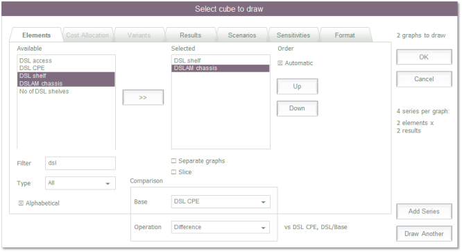 Almost every result in STEM is graphed automatically as a column or line chart according to its built-in characterisation as ‘aggregate’ (e.g., revenue and cost) or ‘instantaneous’ (e.g., connections, installed units). So the ‘how’ of graphing mostly looks after itself, whereas the ‘what’ can leave something to be desired when the lists of elements to select from become too large and cumbersome, and especially when using template replication on a large model.