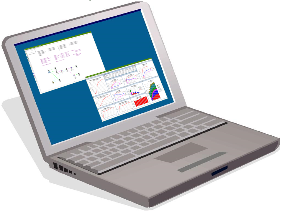 Results graphs and tables can be placed alongside the relevant icons, or in separate